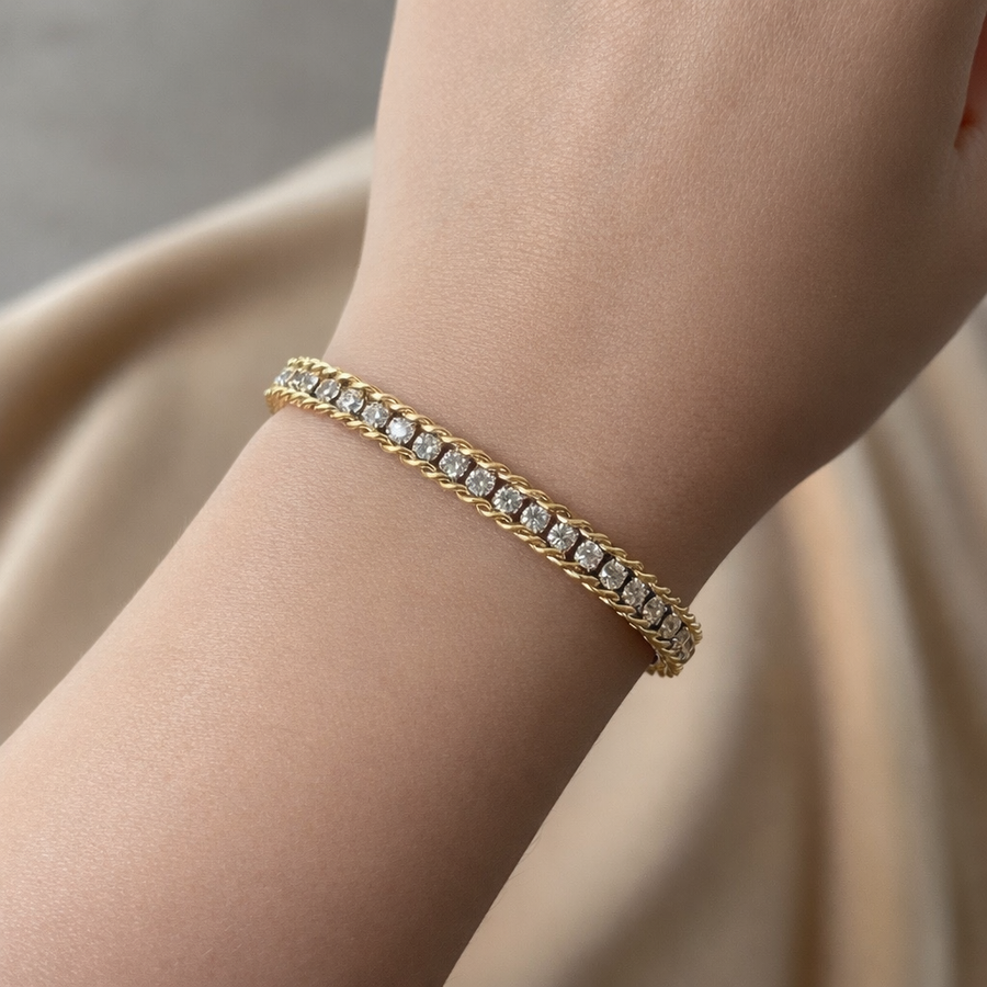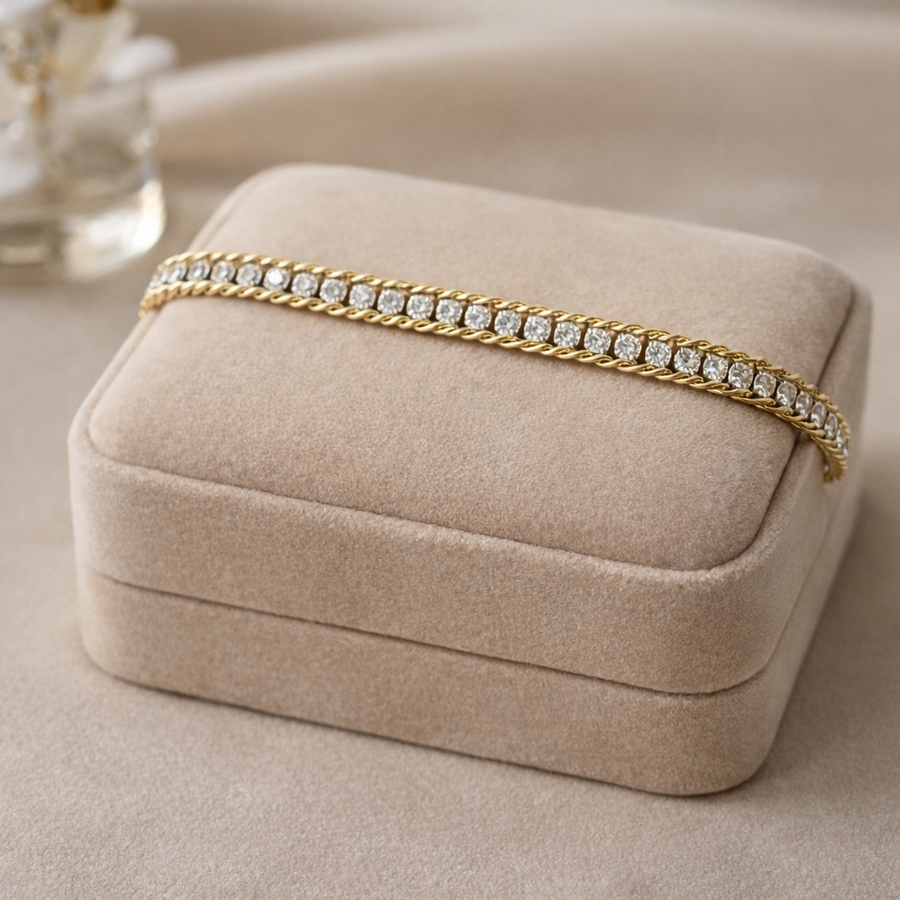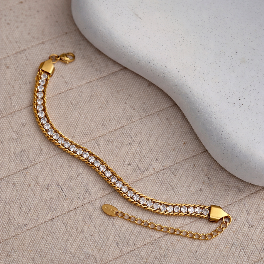 انسيال تنس ذهبي استانلس ستيل ضد الماء ، مقاوم للصدا ، الوانه ثابته مش بتتغير.