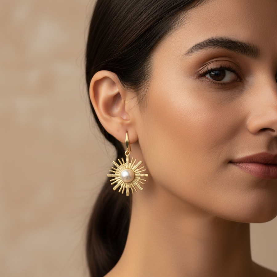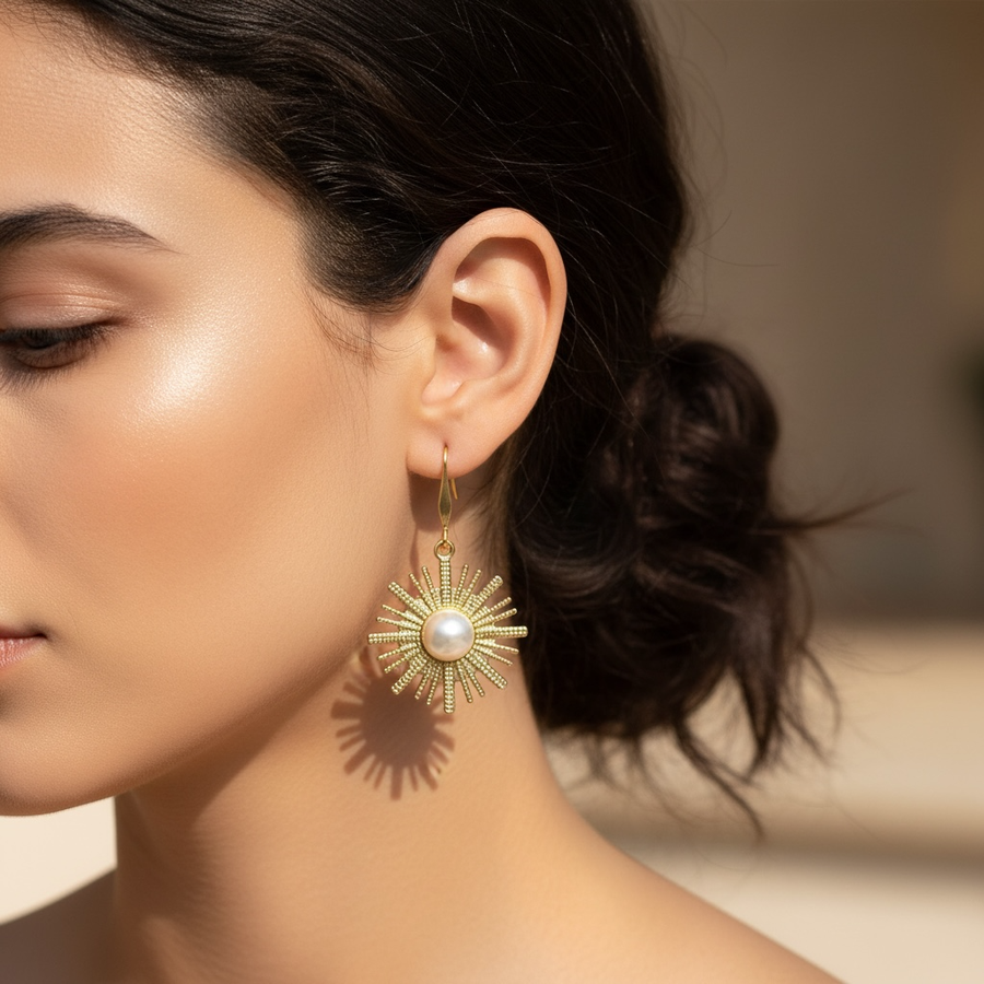 حلق استانلس ستيل شمس بفص لولي ضد الماء ، مقاوم للصدا ، الوانه صابته لا تتغير .