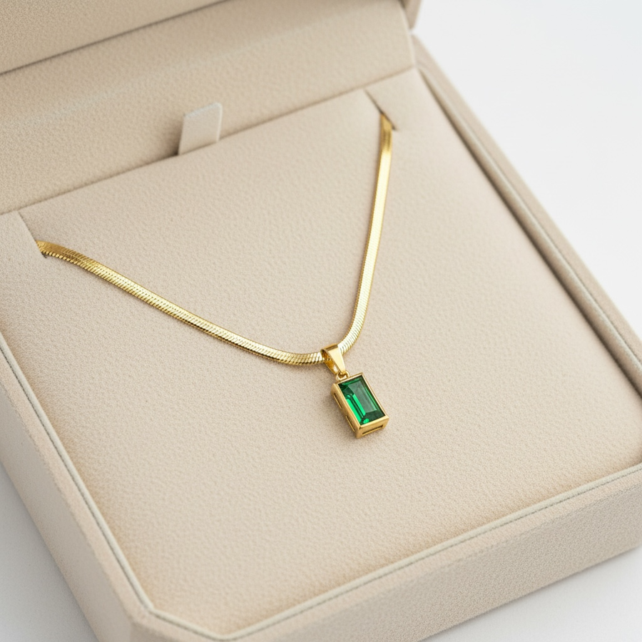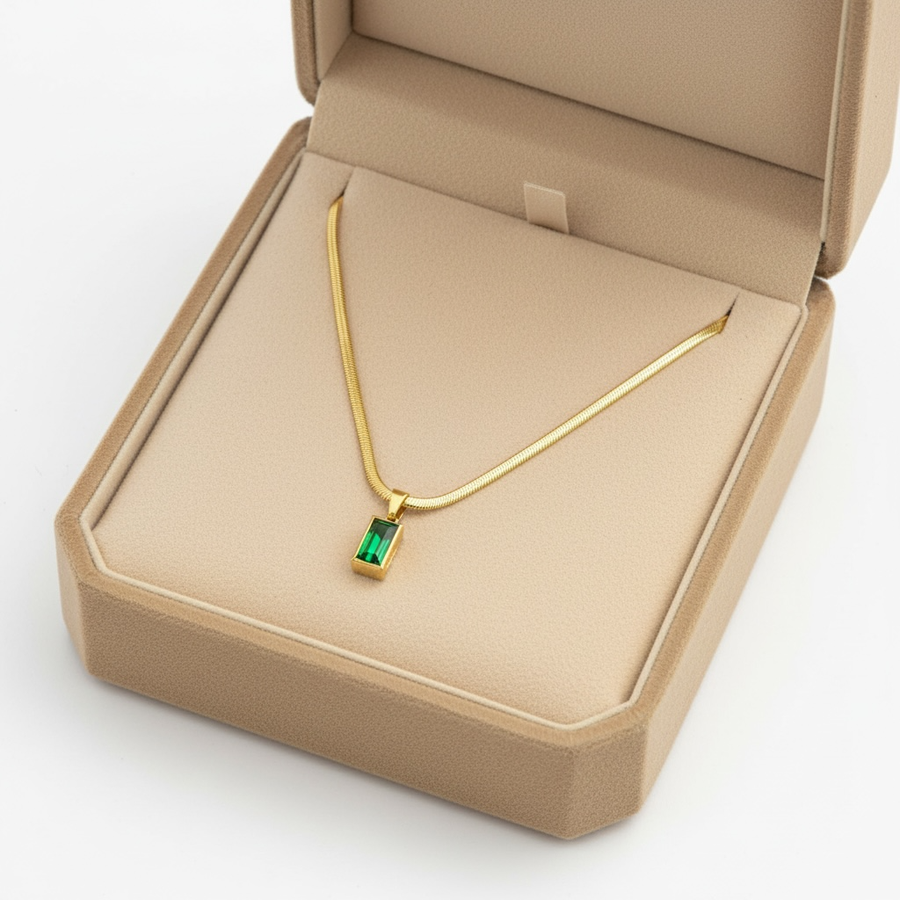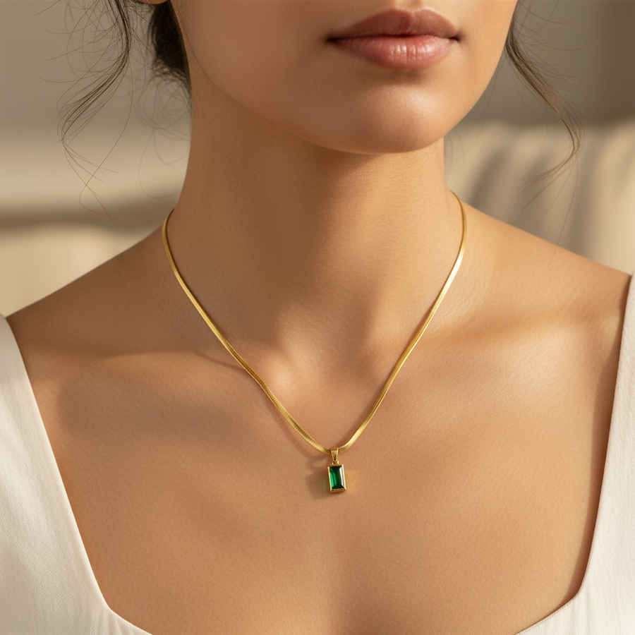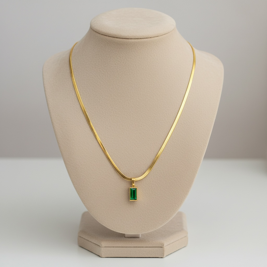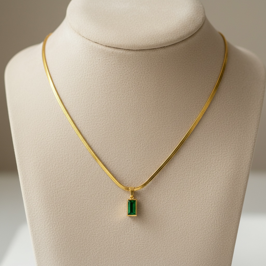 سلسلة استانلس ستيل ظهر حيه بفص اخضر ضد الماء،مقاوم للصدأ ، الوانة ثابتة .