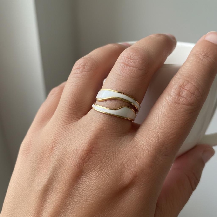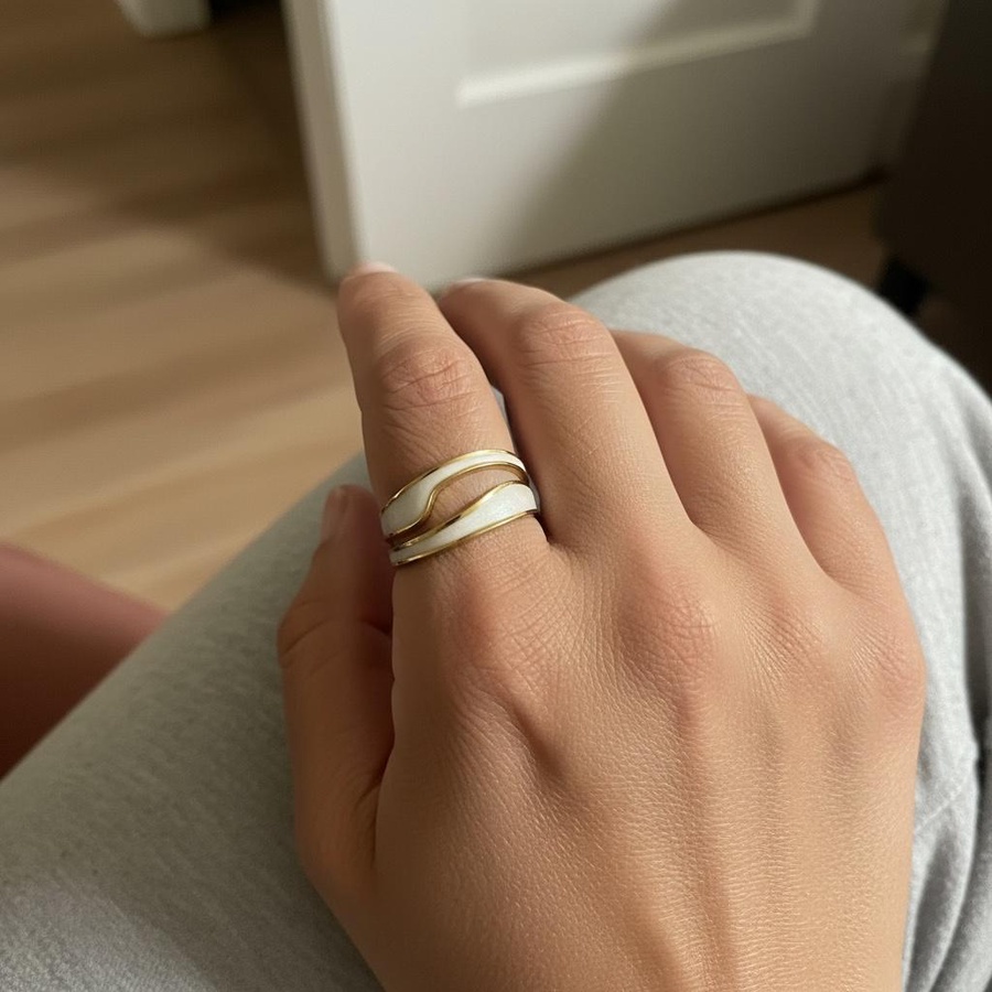 خاتم صدف ابيض استانلس ستيل ضد الماء و مقاوم للضدأ و مقاوم لتغيير اللون .