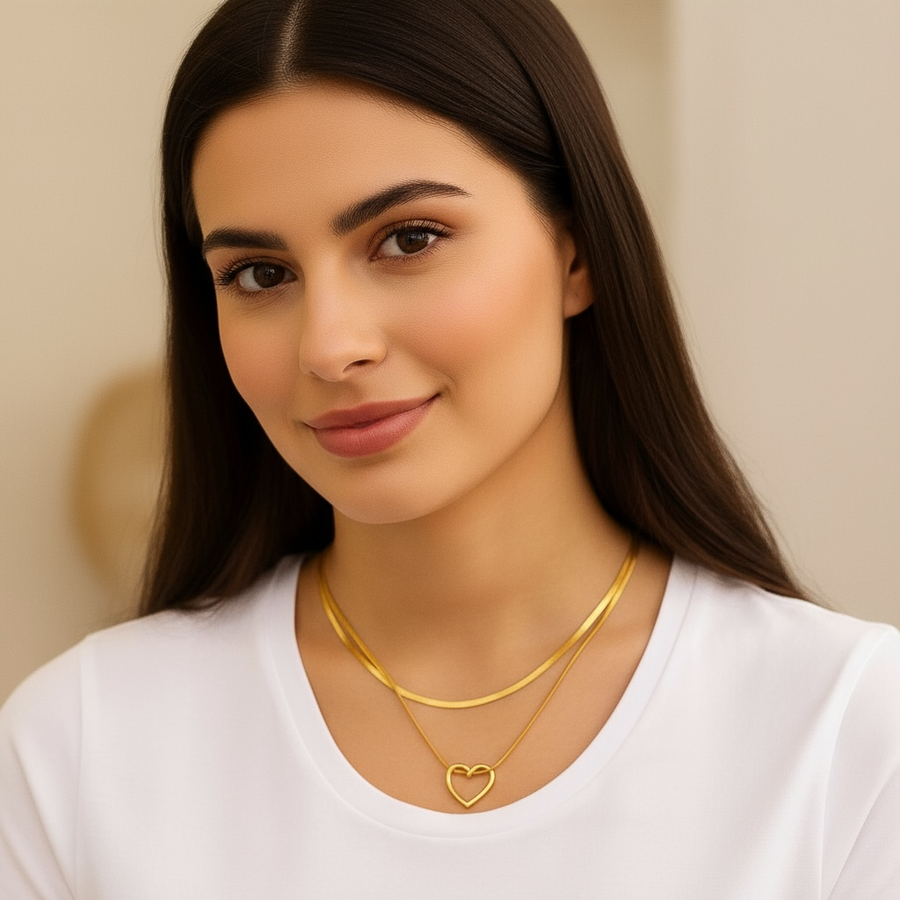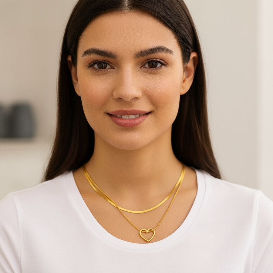طقم سلاسل ضهر حيه و سلسلة قلب مفرغ استانلس ستيل ضد الماء مقاوم للصدا الوان ثابته مدي الحياه